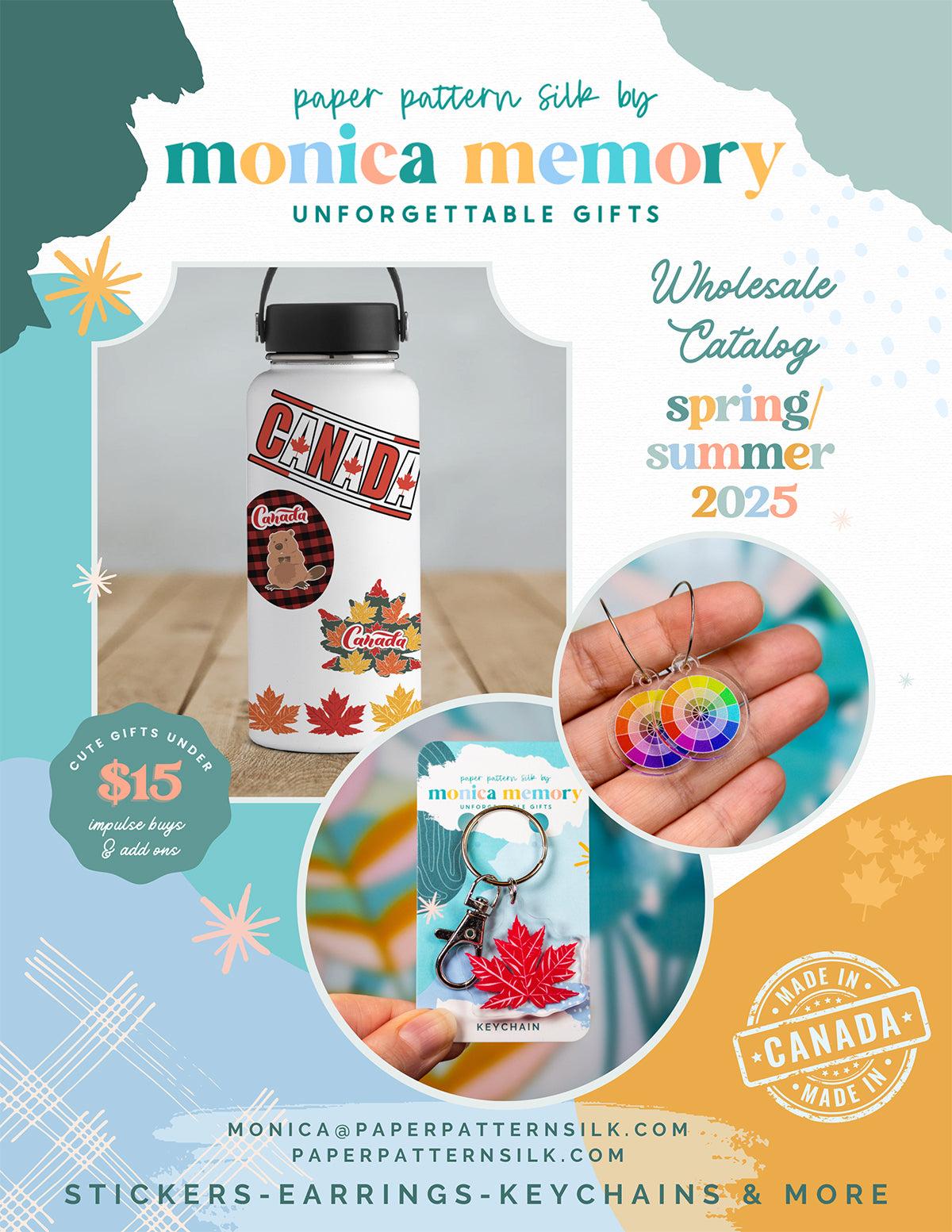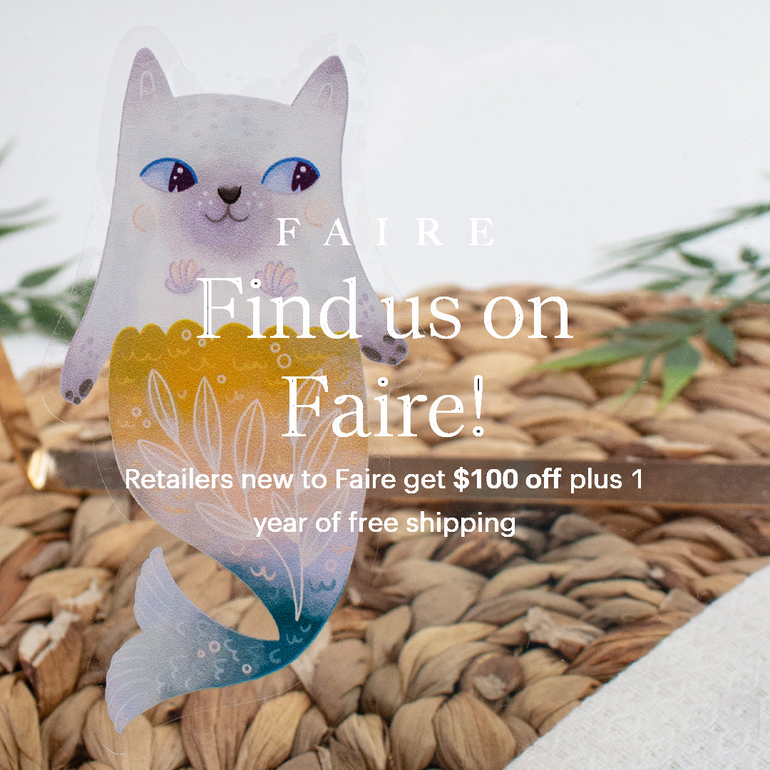 View our full collection and order directly on Faire. Find stickers, keychains, pins, window clings, earrings and necklaces in all my colorful designs.
